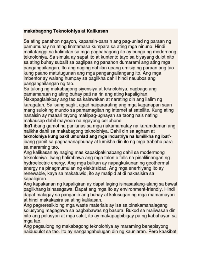 Makabagong Teknolohiya At Kalikasan Pdf