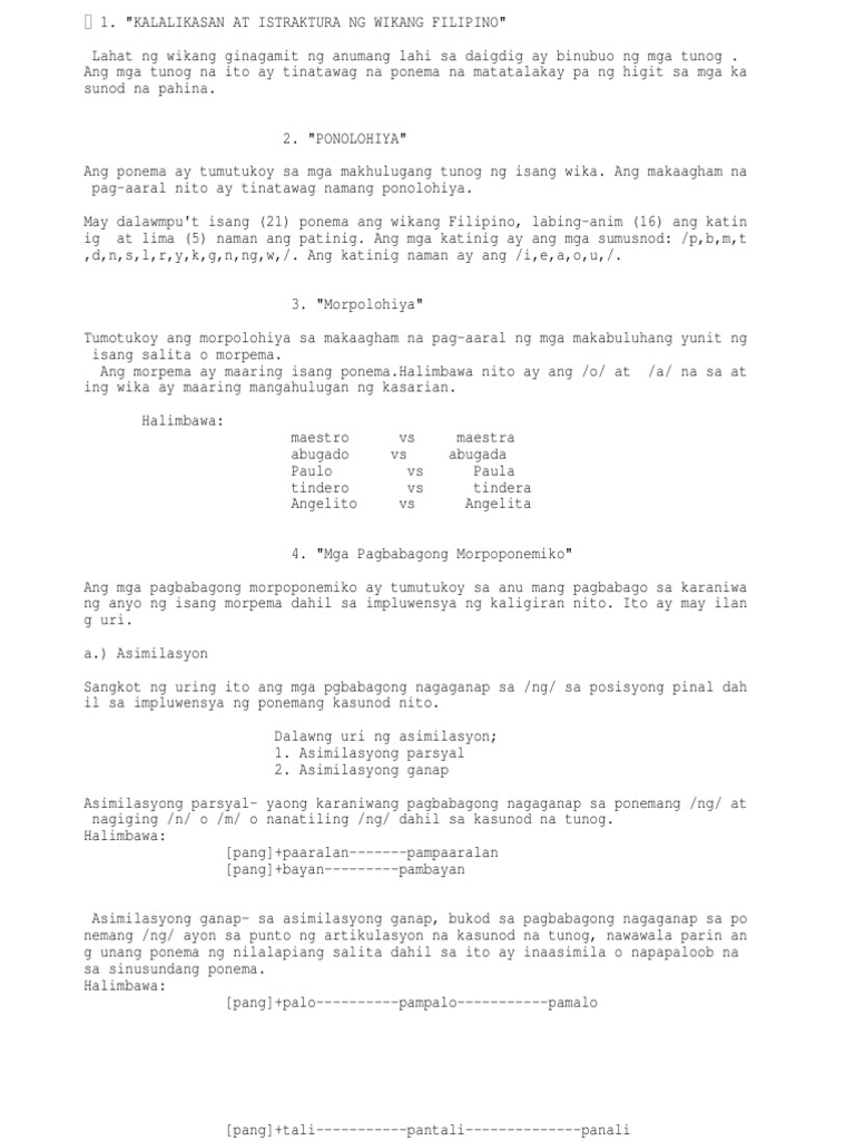 Kalikasan At Istruktura Ng Wikang Filipino Essay