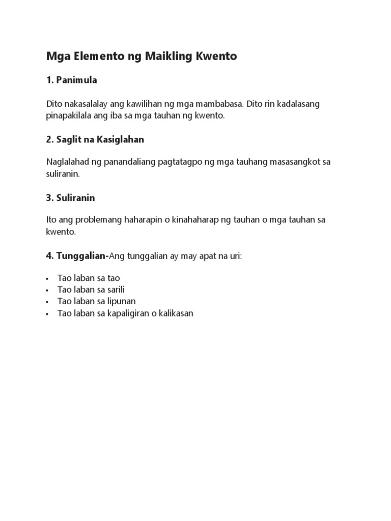 Mga Elemento Ng Maikling Kwento Pdf